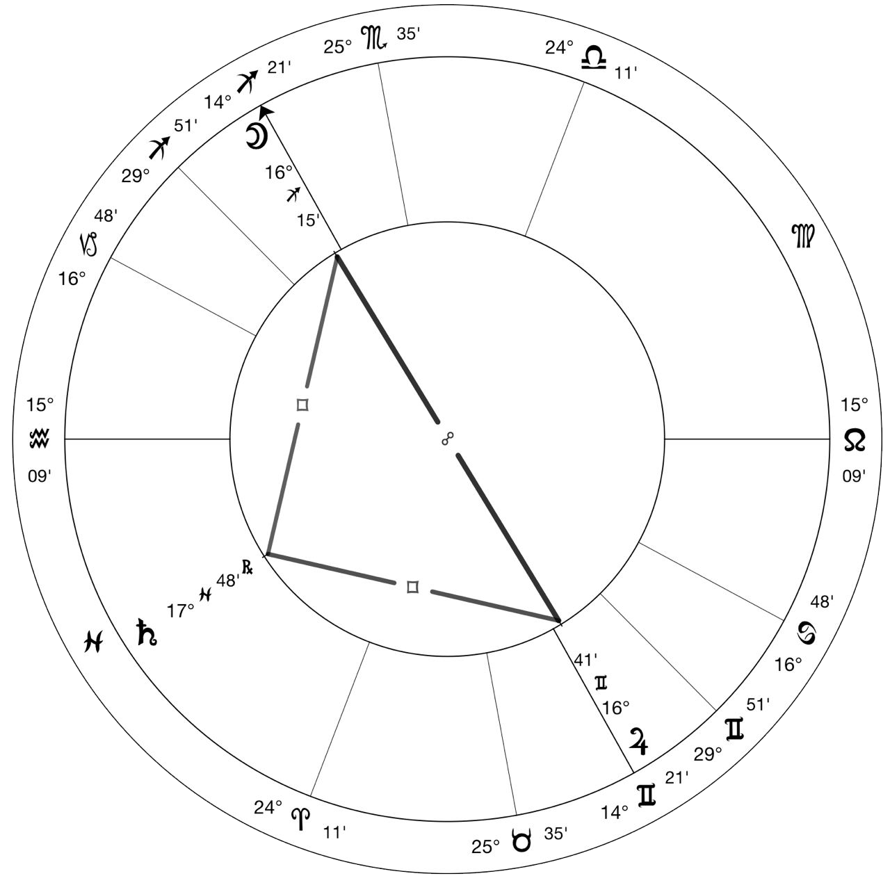 Было замечено, что многих астрологов пугает и сбивает с толку обнаружение этой конфигурации у самих себя или у клиентов в карте.